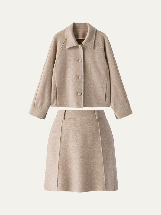 2'li Takım Cepli Minimalist Dik Yaka Kaşe Kısa Ceket ve Mini Etek