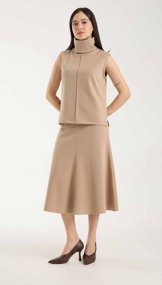 2 Parça Set Yanlardan Toplanmış Yüksek Yaka Bluz & Flared Maxi Etek
