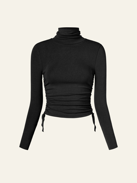 37% İndirimBüzgülü Yan Detaylı Kısa Boy Yüksek Yaka Üst