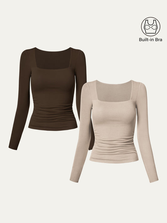 34% İndirim2'li Set Kare Yaka Fırfırlı Brami Üst
