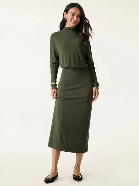 22% İndirimBalıkçı Yaka Dirsek Uzunluğu Kollu Midi Elbise