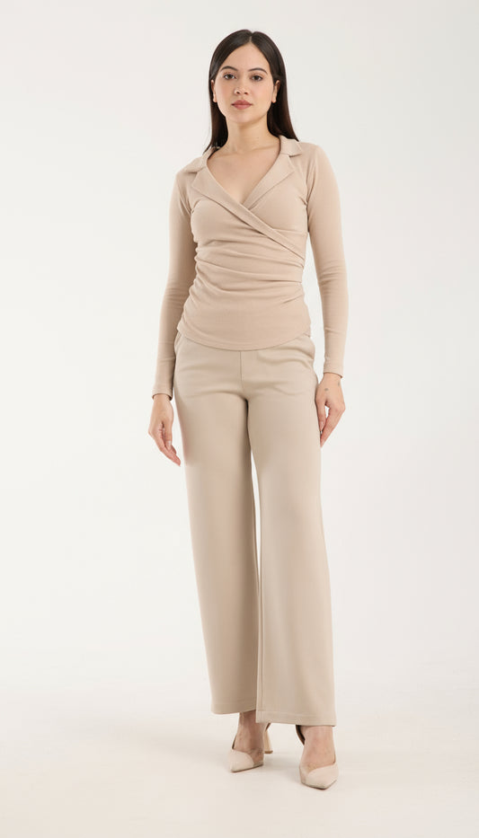 18% İndirimV Yaka Yandan Büzgülü Brami Üst