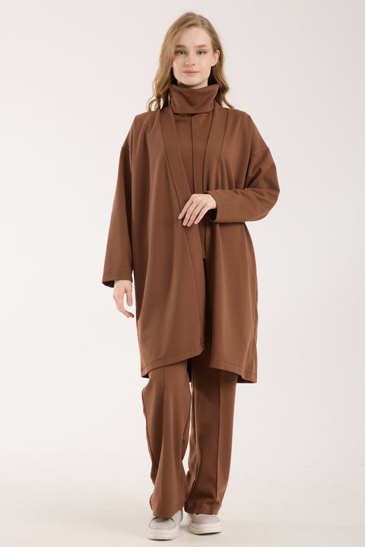 3 Parça Set Katlanabilir Balıkçı Yaka Üst & Kısa Ceket & Kloş Uzun Etek