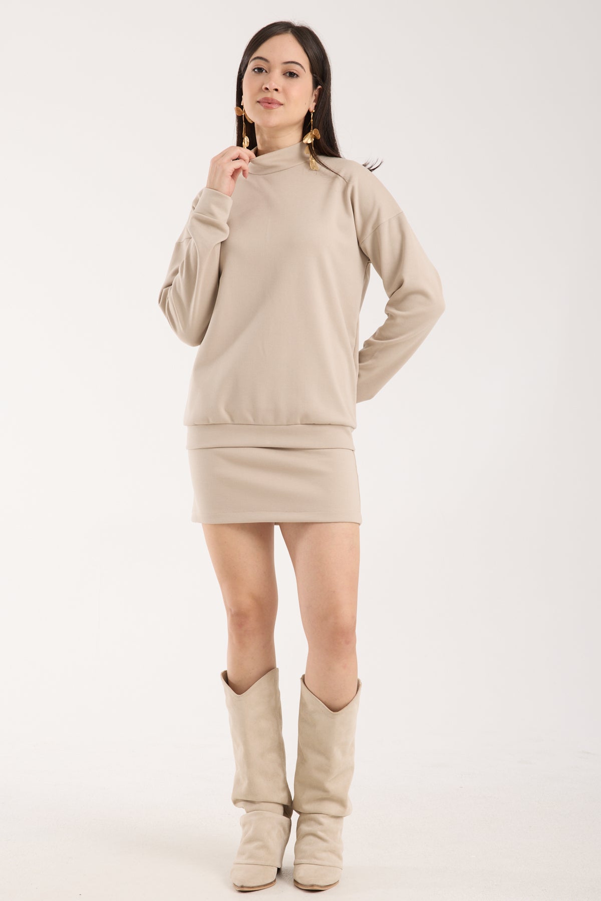 Yüksek Yaka Düşük Kollu Sweet