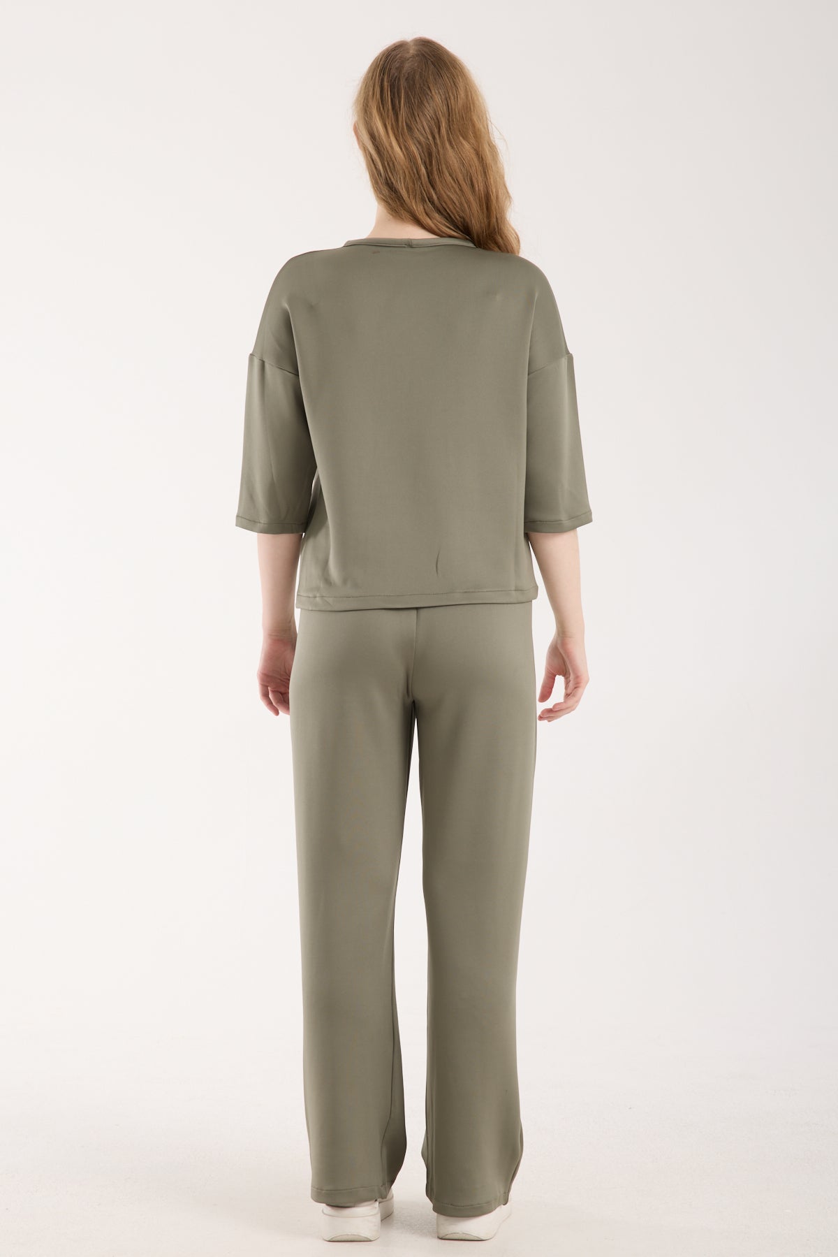2 Parça Set Üç Çeyrek Kollu Üst & Rahat Modal Pantolon