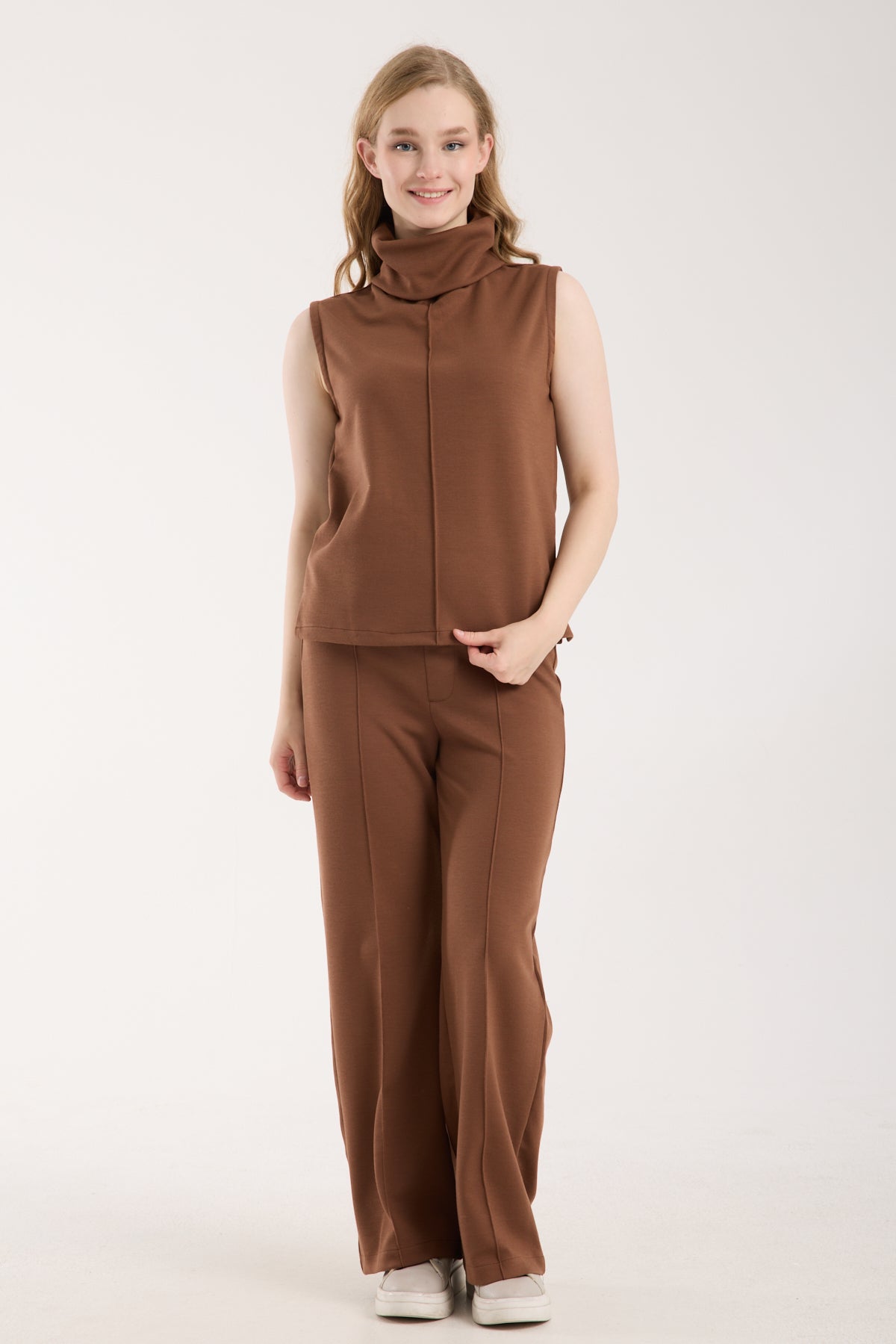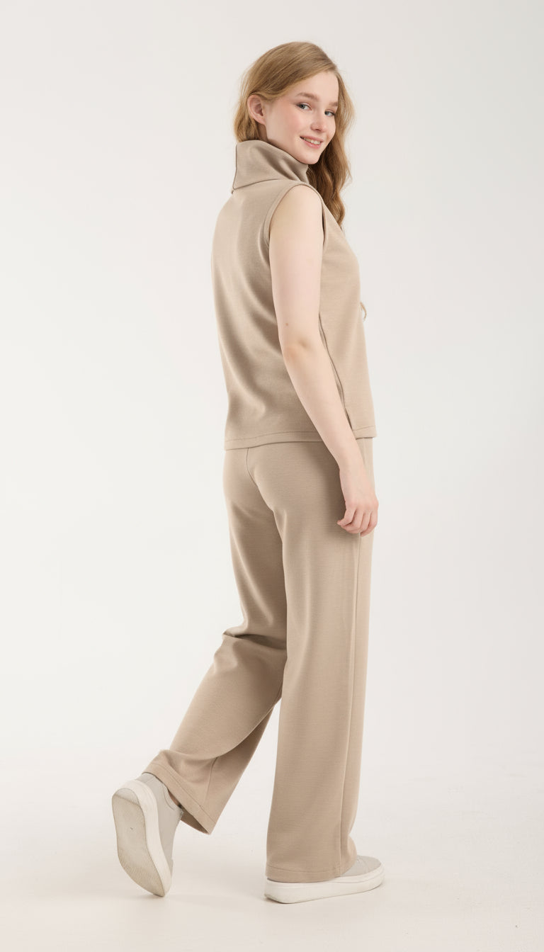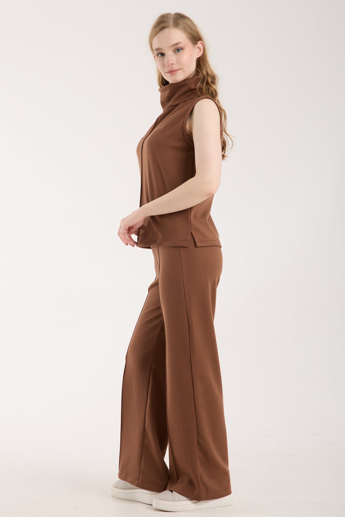 2'li Takım Yırtmaç Detaylı Üst & Yüksek Bel Düz Kesim Pantolon