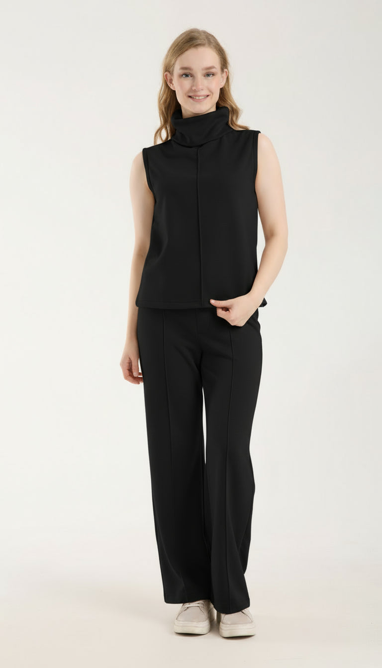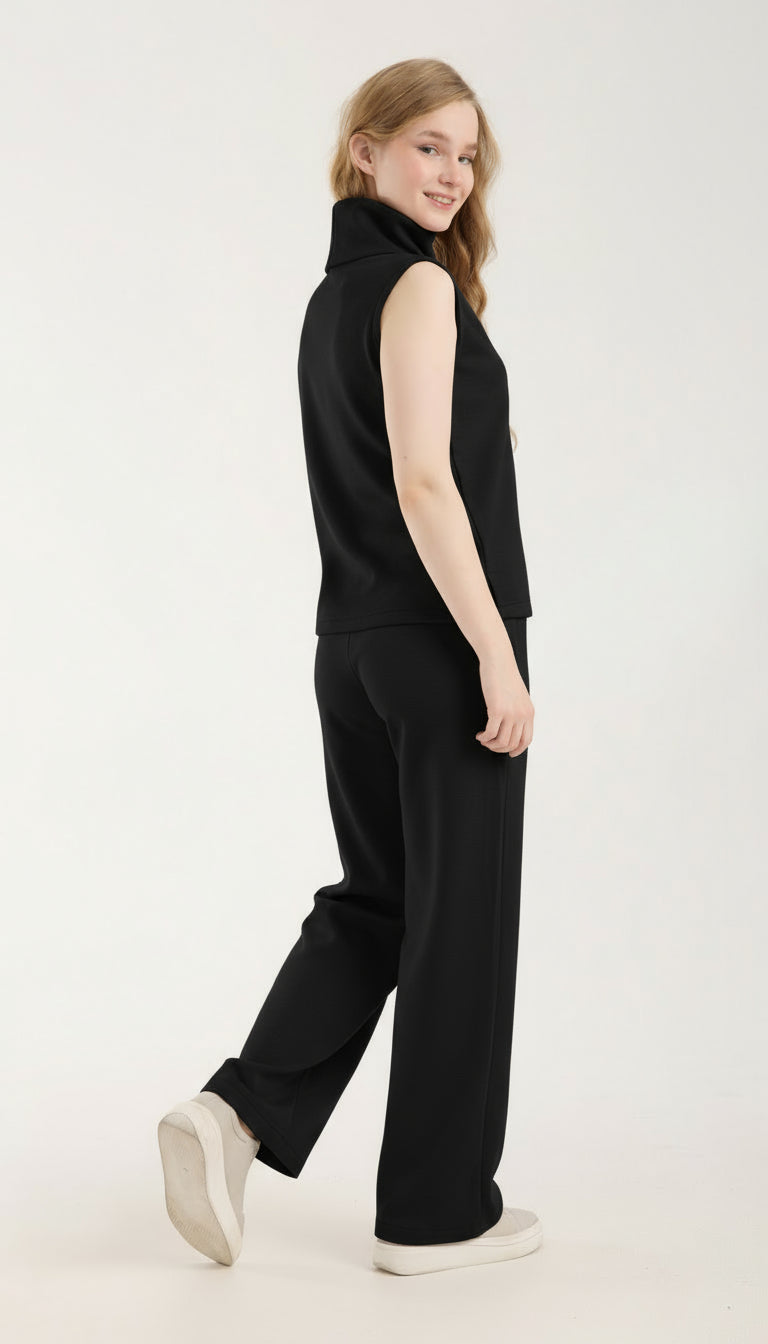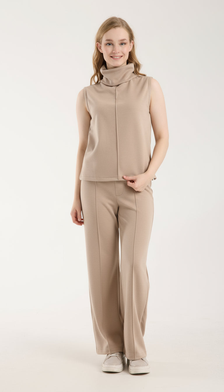 2'li Takım Yırtmaç Detaylı Üst & Yüksek Bel Düz Kesim Pantolon