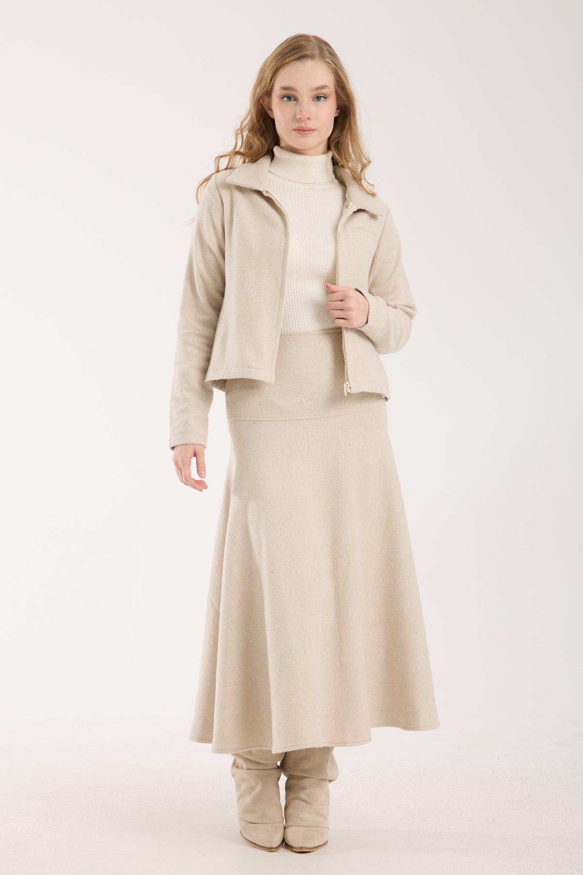 2 Parça Set Tam Fermuarlı Kısa Ceket ve Kloş Uzun Etek