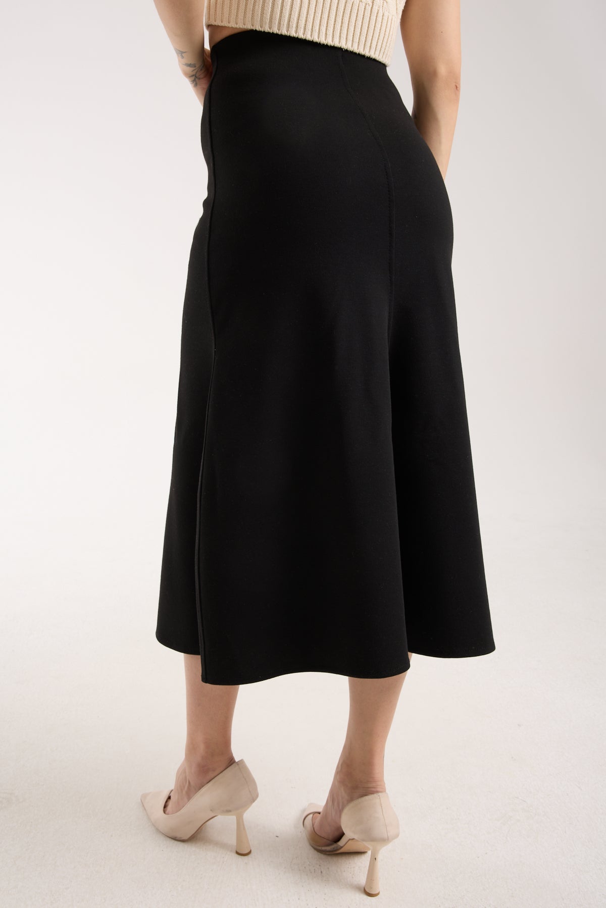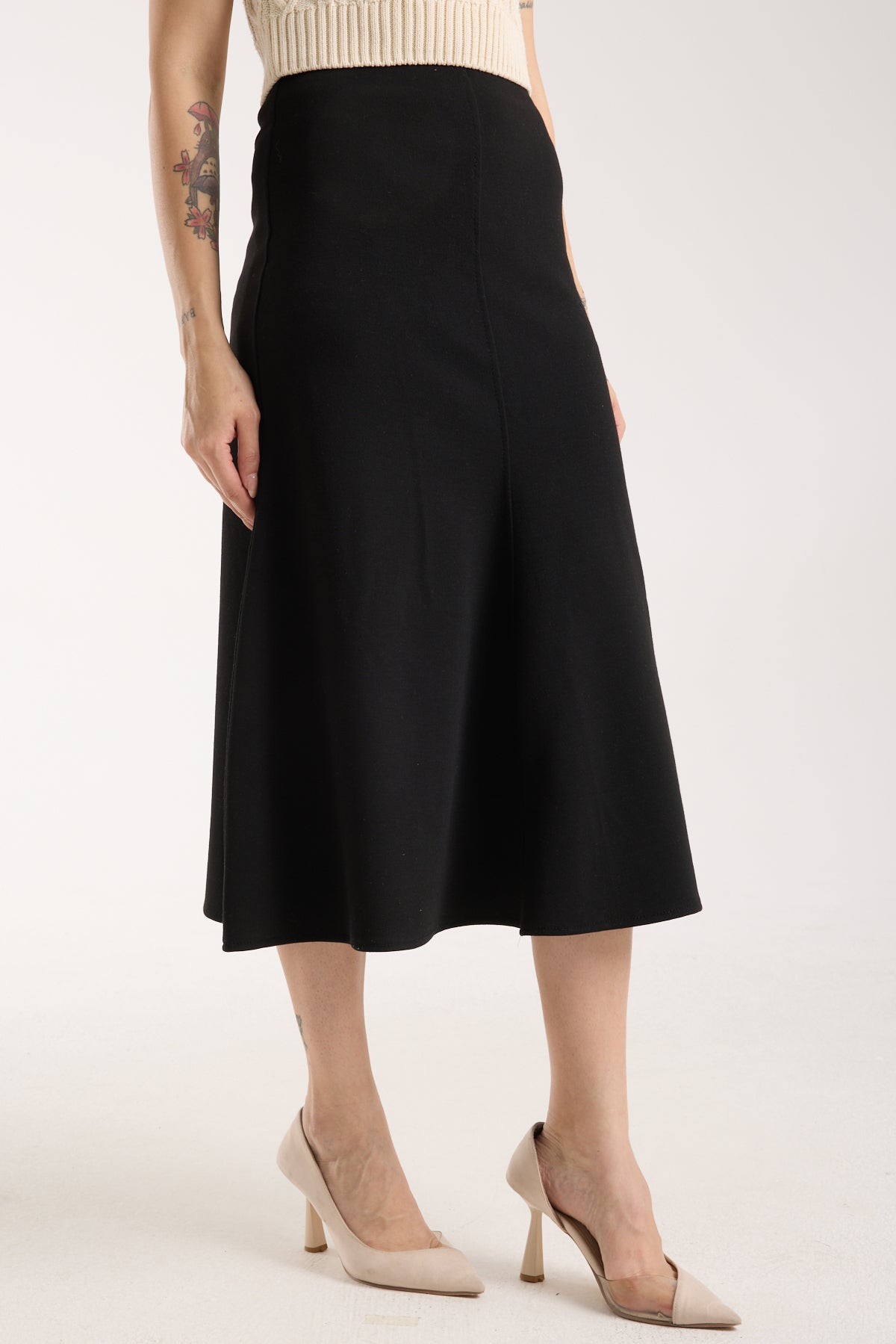 32% İndirimYün Görünümlü Flared Maxi Etek