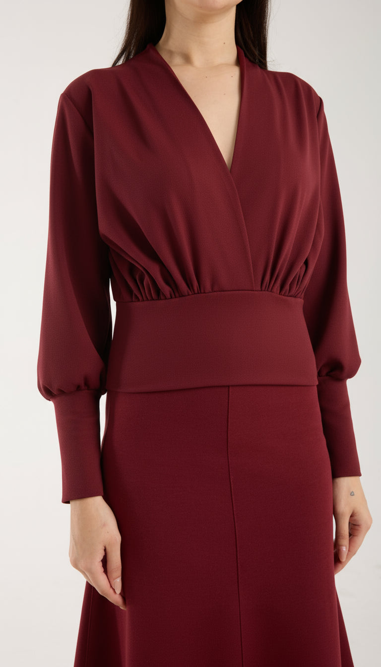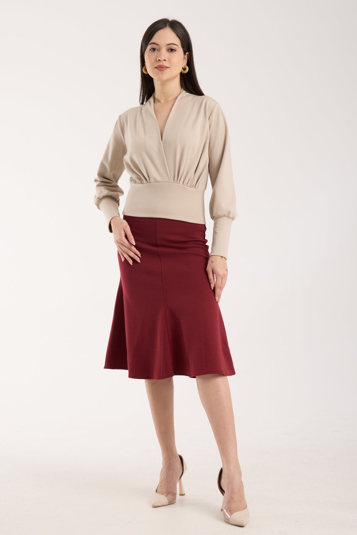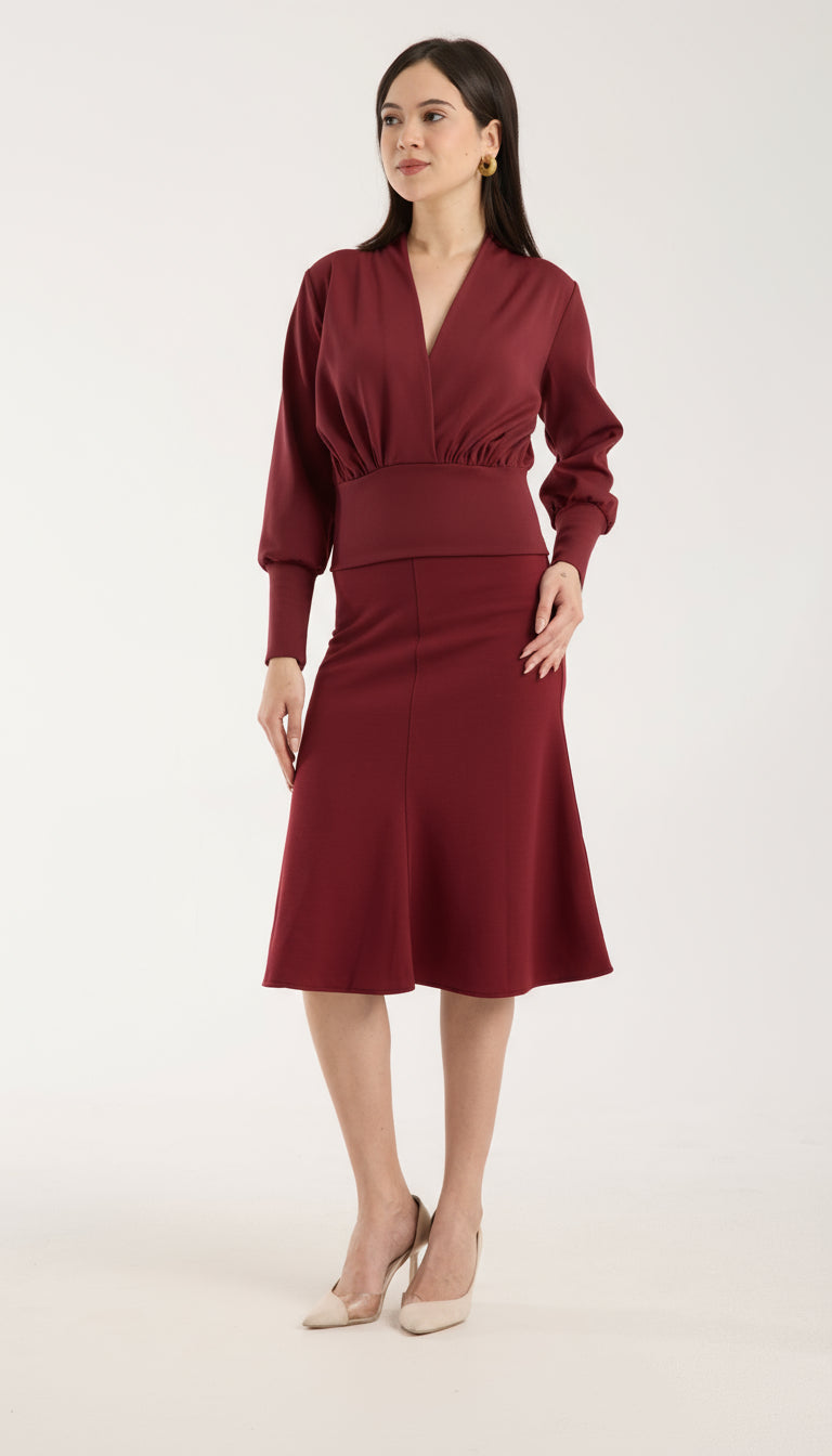 2 Parça set Puf Kollu Kayık Yaka Brami Üst & Korsajlı Kloş Etek