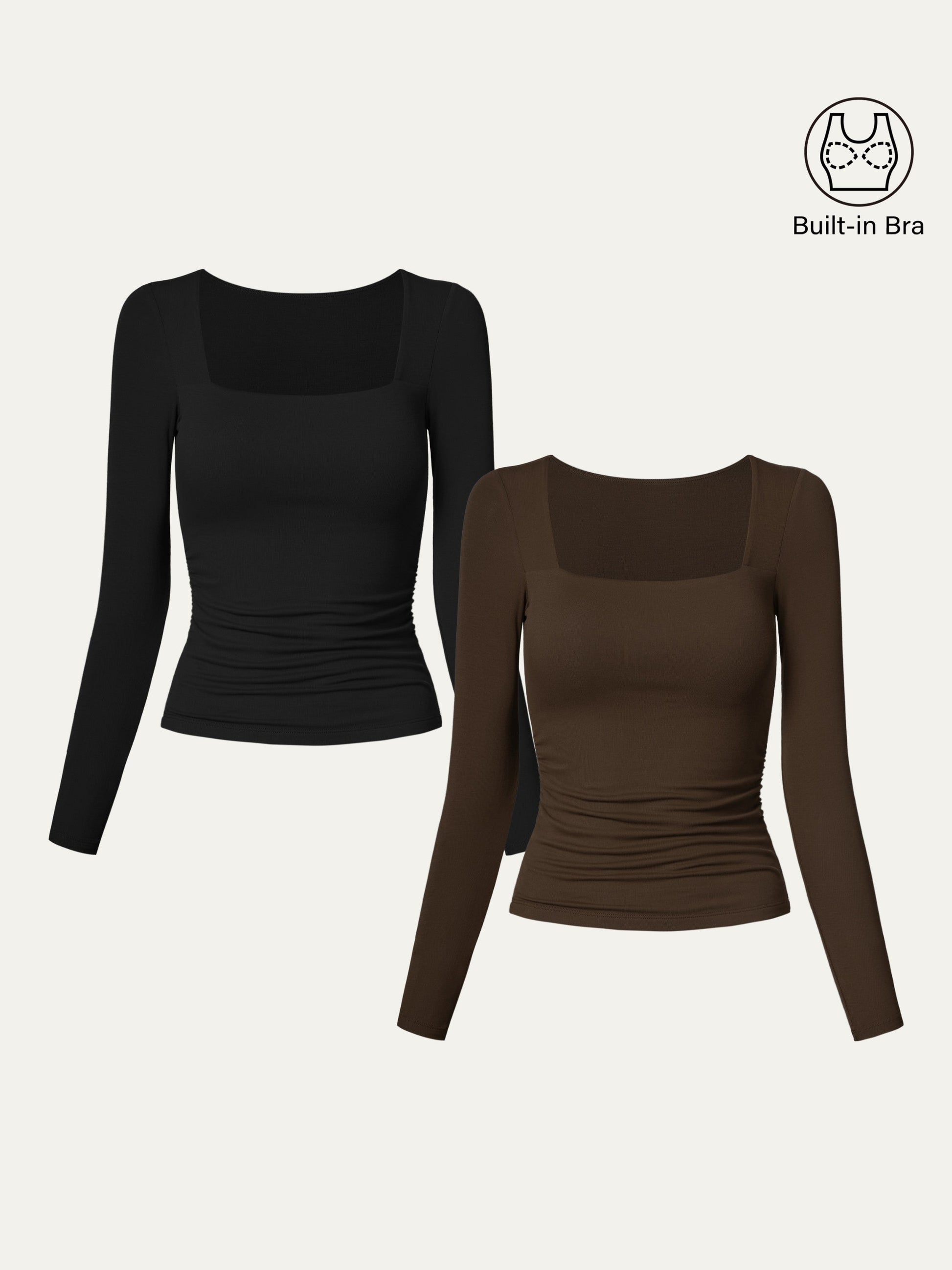 2'li Set Kare Yaka Fırfırlı Brami Üst