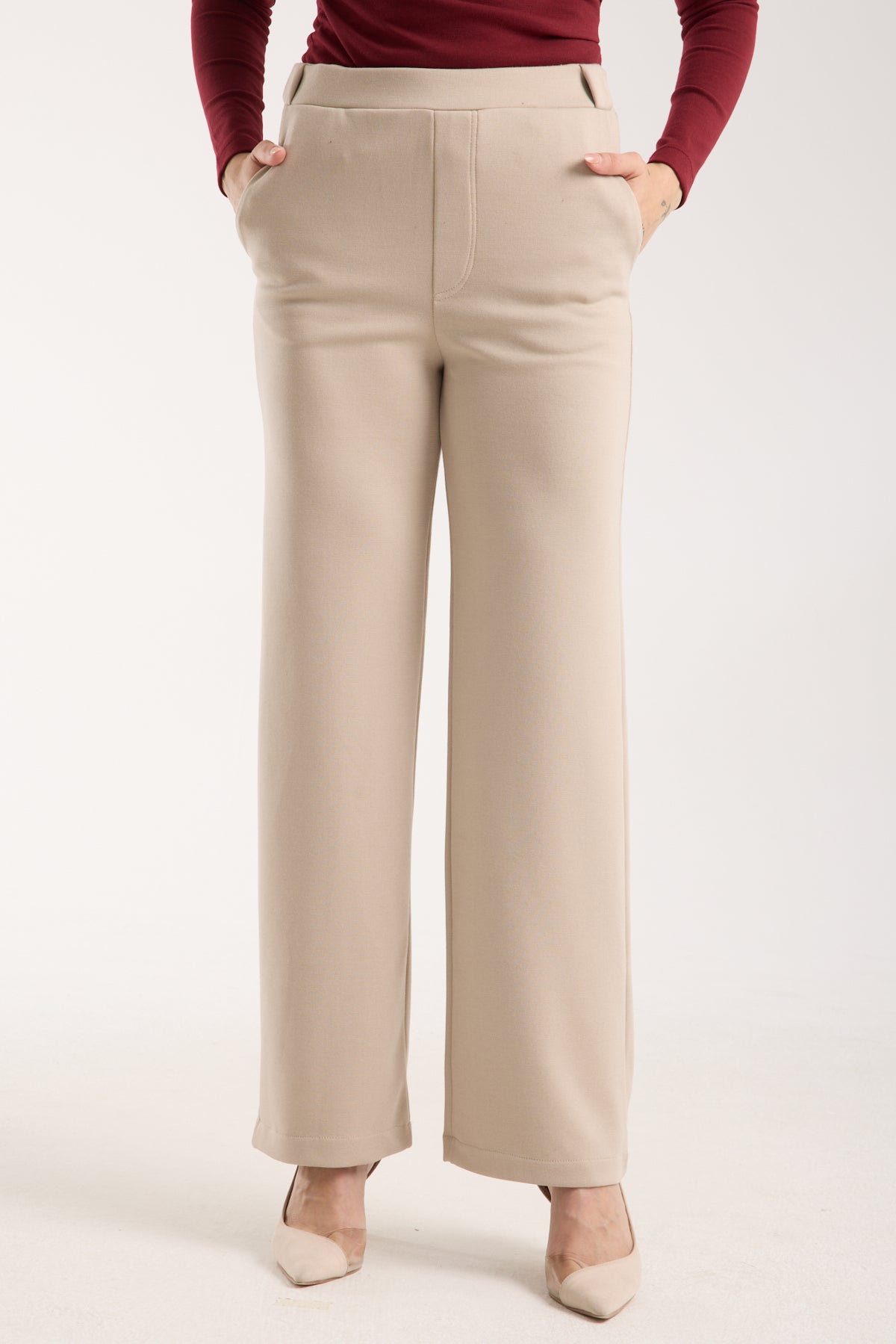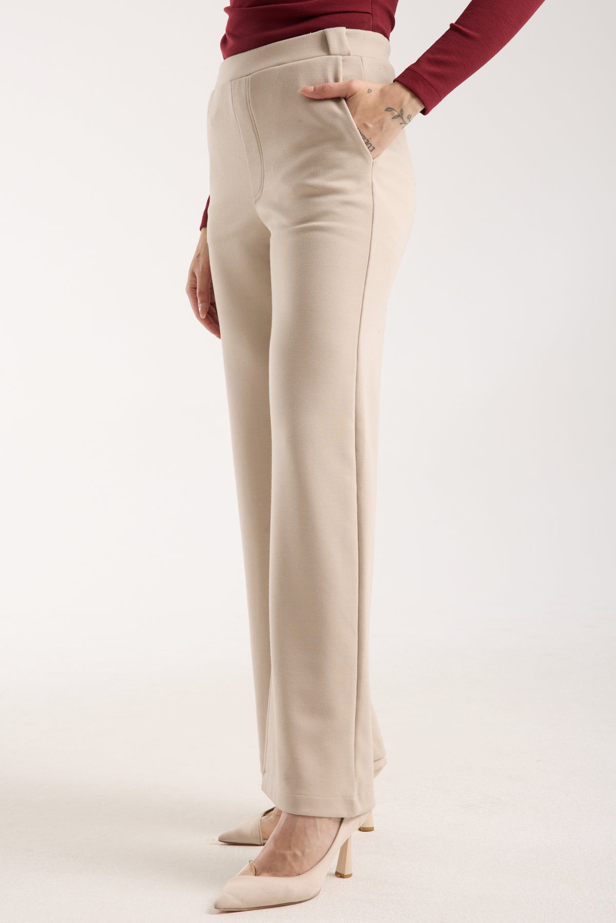 Esnek Orta Bel Düz Paça Pantolon