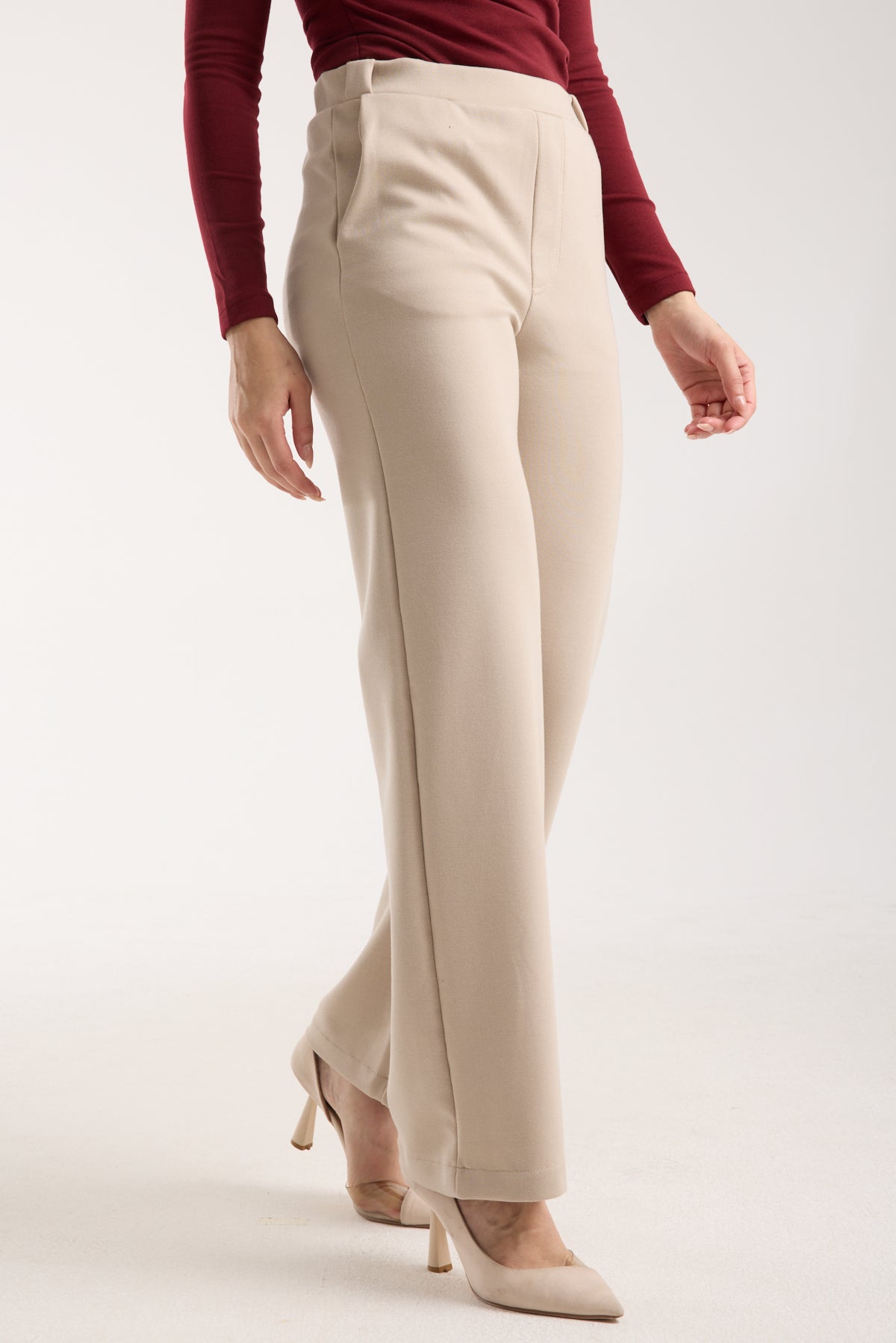 18% İndirimEsnek Orta Bel Düz Paça Pantolon