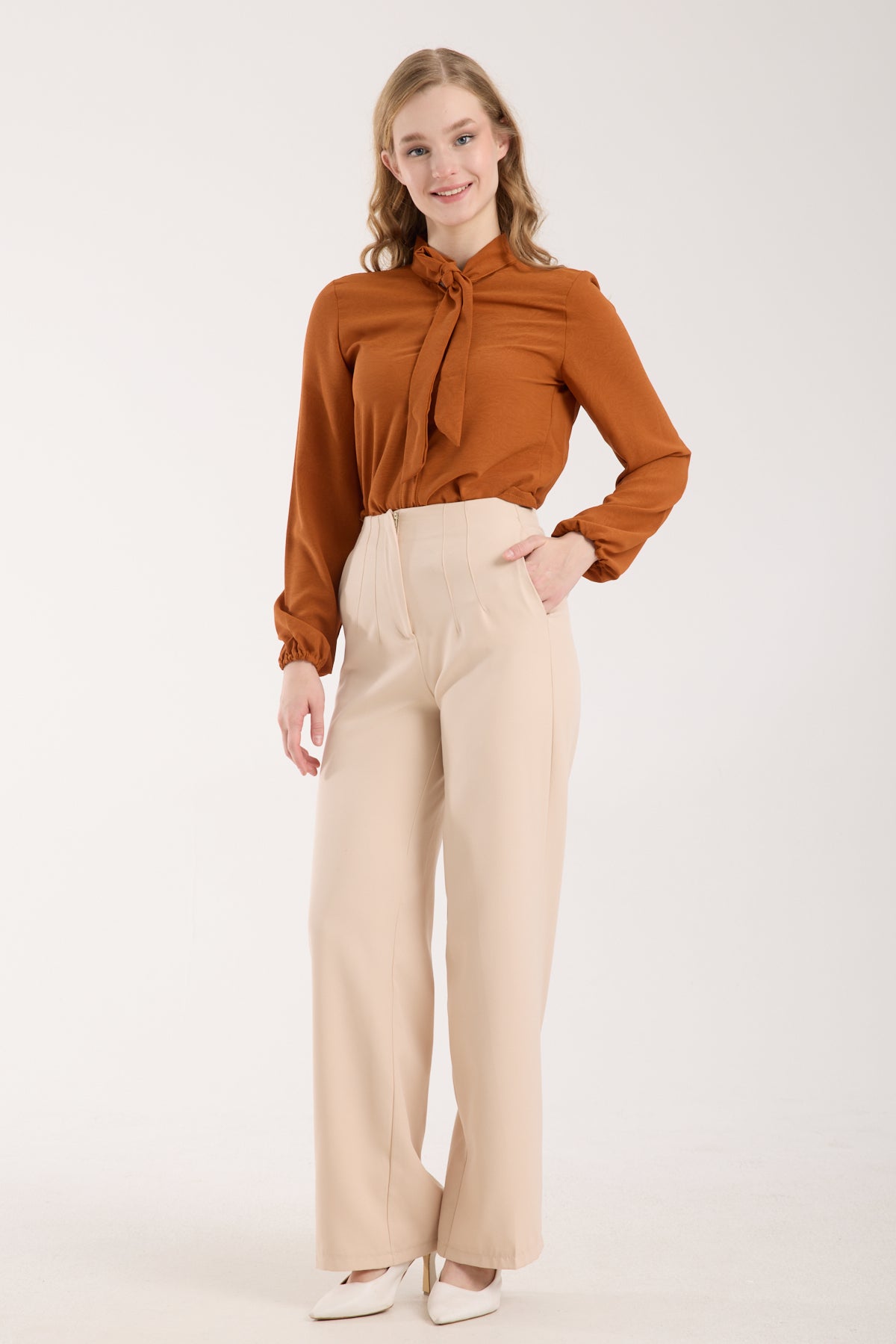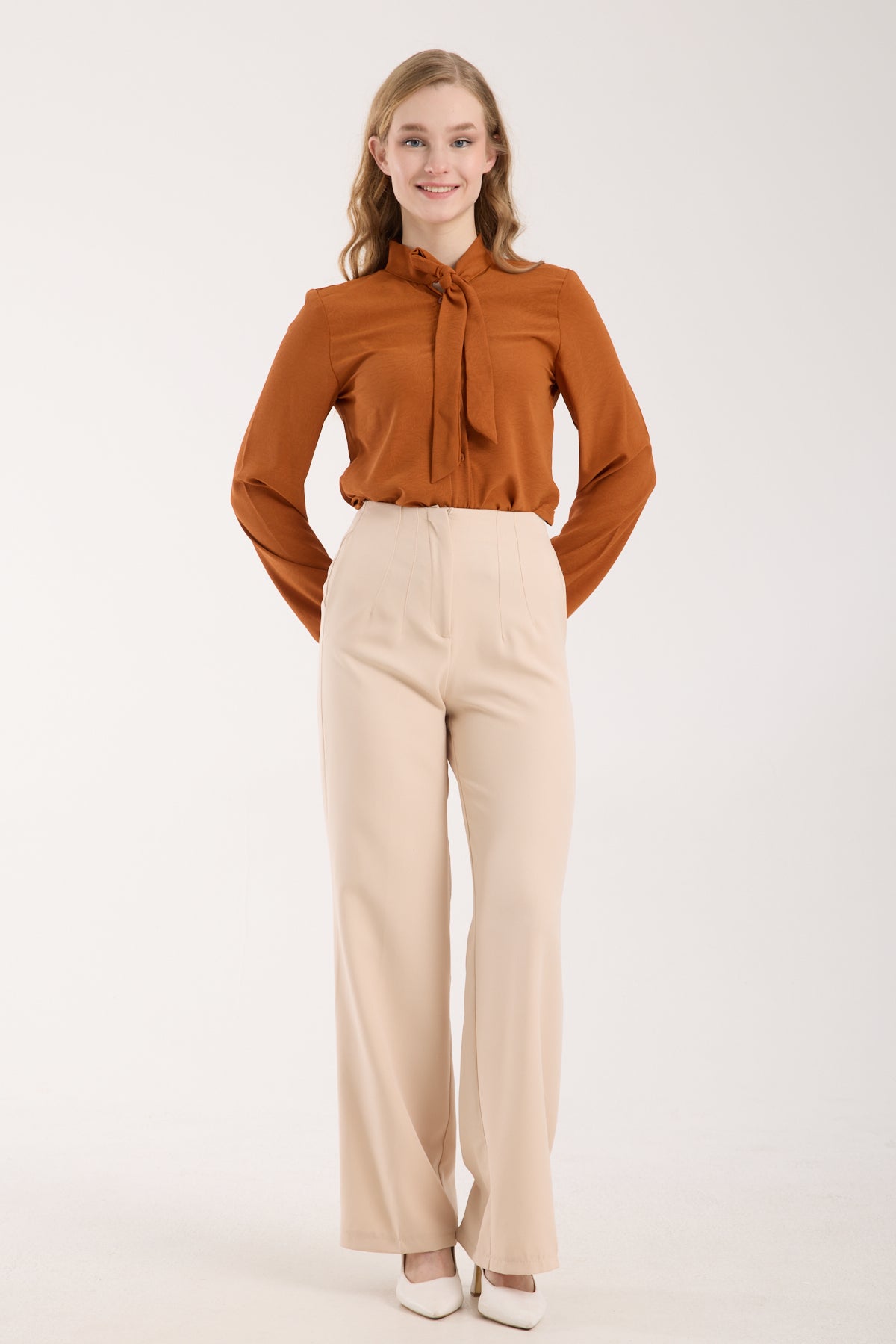 18% İndirimEsnek Orta Bel Düz Paça Pantolon